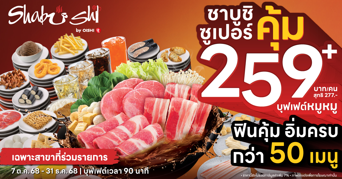 “บุฟเฟต์ซูเปอร์คุ้ม” ให้บริการที่ร้าน Shabushi เฉพาะสาขาที่ร่วมรายการเท่านั้น (คลิกตรวจสอบสาขาได้ที่